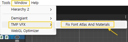 In the editor, go to the top-left corner and click Window -> TMP VFX -> Fix Font Atlas And Materials.