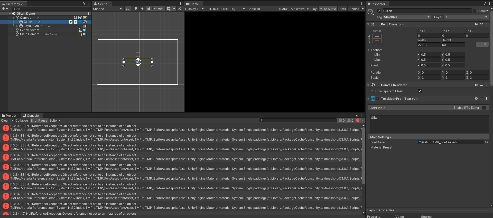 When opening the demo scene, you may encounter frequent Null errors, as shown in the image below.